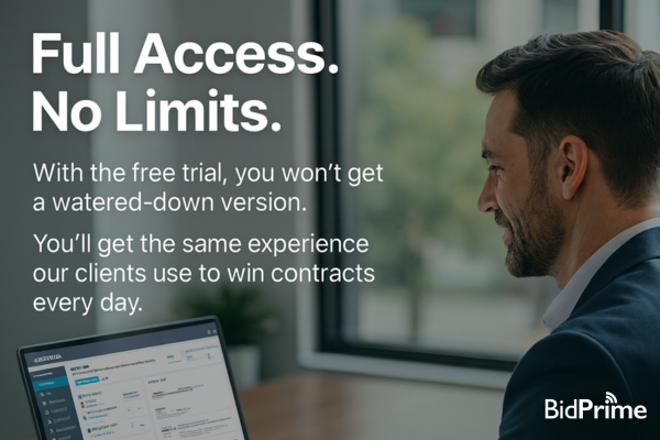 In a market full of limitations, locked previews, and vague demo promises, BidPrime stands alone as the only service offering a true free trial, with real access to real bid opportunities, full documents, and complete transparency.